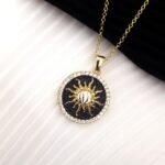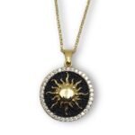 Περιμετρικά του ήλιου, το μενταγιόν είναι στολισμένο από λευκά ζιρκόν αντανακλώντας μια δόση λάμψης, κάνοντας αυτό το κόσμημα μοναδικό!