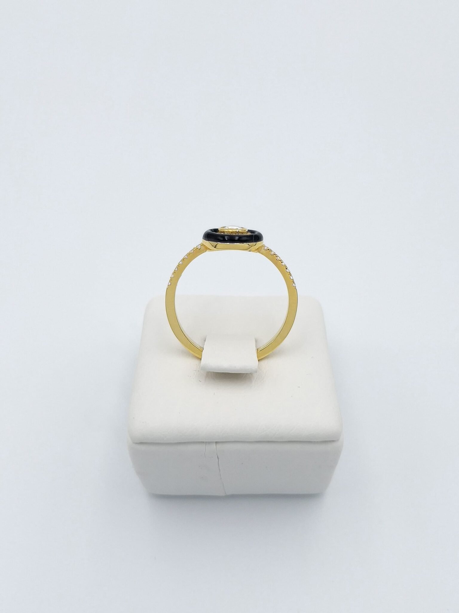 Δαχτυλίδι Στρογγυλού Σχήματος από Χρυσό 14Κ (585) με Σμάλτο και Κεντρική Πέτρα
