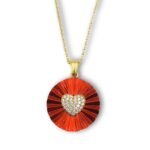 Η Καρδιά αγκαλιάζεται με κόκκινο νανοκεραμικό χρώμα, ως φόντο για να αποτυπώσει το περίτεχνο μοτίβο. Είναι διαθέσιμο σε ποικιλία χρωμάτων για να διαλέξεις τον αγαπημένο σου συναδυασμό. Είναι στολισμένο από ζιρκόν αντανακλώντας μια δόση λάμψης, κάνοντας αυτό το κόσμημα μοναδικό!
