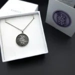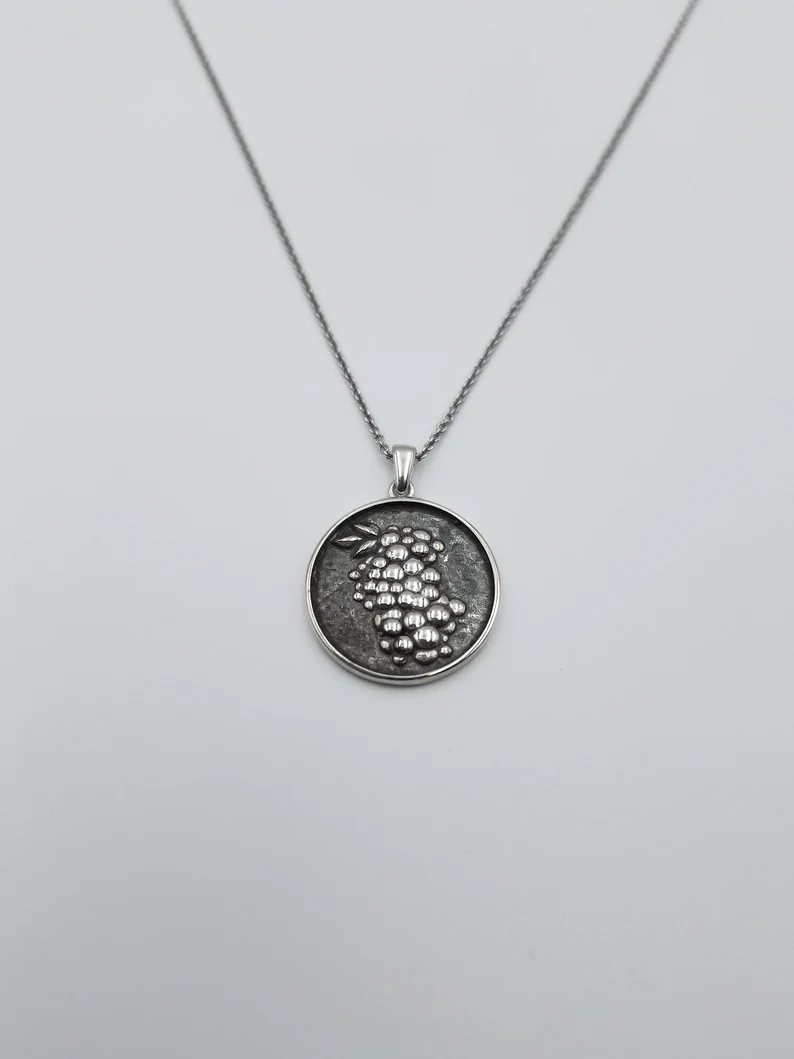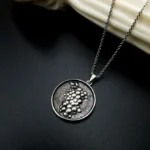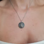 Το μενταγιόν είναι κατασκευασμένο από καθαρό ασήμι 925 και συνοδεύεται από ασημένια αλυσίδα 925 . Το φόντο του κοσμήματος έχει εντυπωσιακή διχρωμία με τη χρήση της οξειδωμένης τεχνικής αφήνοντας να διαφαίνεται το μοτίβο, προσθέτοντας βάθος και χαρακτήρα στο σχέδιο.