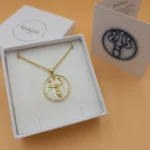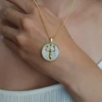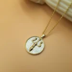 Το μενταγιόν είναι κατασκευασμένο από επιχρυσωμένο ασήμι 925 και συνοδεύεται από επίχρυση ασημένια αλυσίδα . Το φόντο του κοσμήματος έχει εντυπωσιακή διχρωμία, αφήνοντας να διαφαίνεται το φυσικό ασήμι και προσθέτοντας βάθος και χαρακτήρα στο σχέδιο.