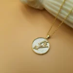 Το μενταγιόν είναι κατασκευασμένο από επιχρυσωμένο ασήμι 925 και συνοδεύεται από επίχρυση ασημένια αλυσίδα . Το φόντο του κοσμήματος έχει εντυπωσιακή διχρωμία, αφήνοντας να διαφαίνεται το φυσικό ασήμι και προσθέτοντας βάθος και χαρακτήρα στο σχέδιο.