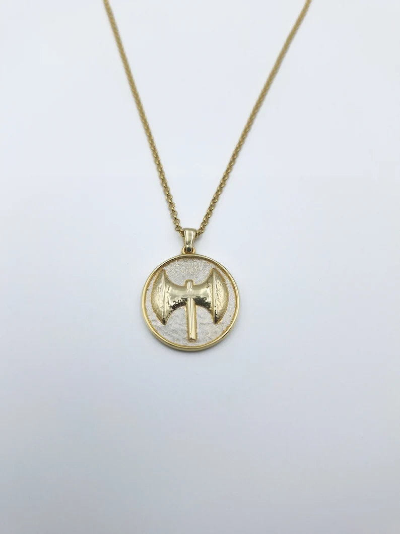 Κολιέ “Ο Πέλεκυς του Ηφαίστου” – Χειροποίητο με ακρίβεια και διακοσμημένο με λεπτομέρειες υψηλής τέχνης, αυτό το εντυπωσιακό κόσμημα αποτελεί έναν ύμνο στη δεξιοτεχνία και τη δημιουργική φλόγα.