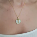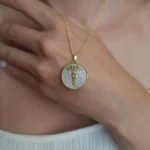 Το μενταγιόν είναι κατασκευασμένο από επιχρυσωμένο ασήμι 925 και συνοδεύεται από επίχρυση ασημένια αλυσίδα . Το φόντο του κοσμήματος έχει εντυπωσιακή διχρωμία, αφήνοντας να διαφαίνεται το φυσικό ασήμι και προσθέτοντας βάθος και χαρακτήρα στο σχέδιο.