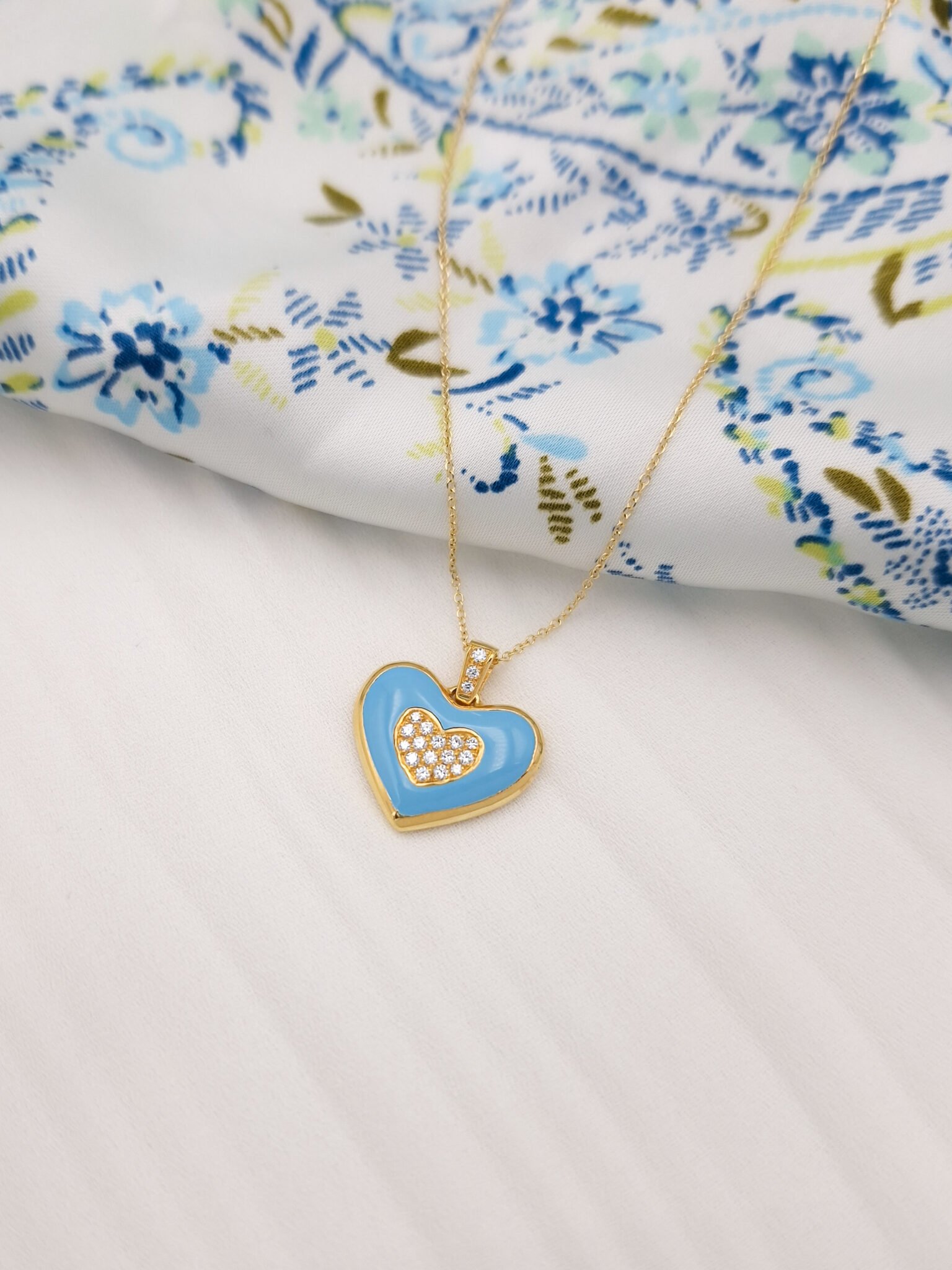 14K Χρυσό Κολιέ Καρδιά με Σμάλτο