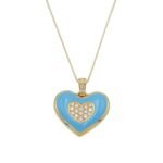 Αναδείξτε την αγάπη με αυτή τη χειροποίητη δημιουργία από Χρυσό 14 Καρατίων (585) υψηλής ποιότητας  σε κίτρινο χρυσό το παντατίφ μαζί με την αλυσίδα. Στολισμένο με λαμπερά ζιρκόνια τοποθετημένα στο χέρι και διακριτική λεπτομέρεια από Τιρκουάζ σμάλτο, αυτό το κόσμημα εκπέμπει πάθος, κομψότητα και διαχρονική ομορφιά.